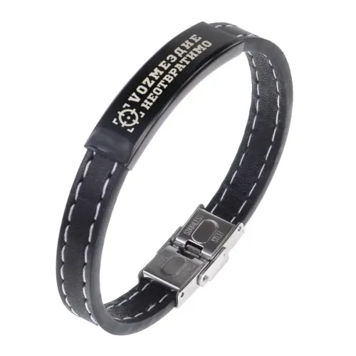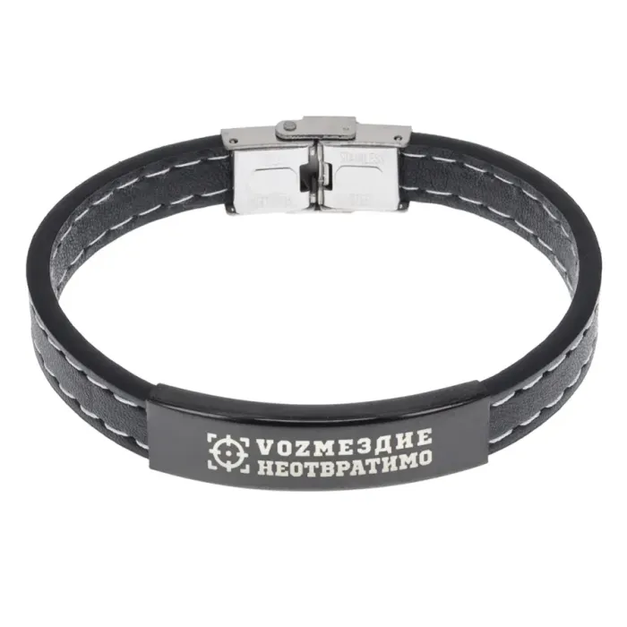 Кожаный браслет с гравировкой «Возмездие неотвратимо».
