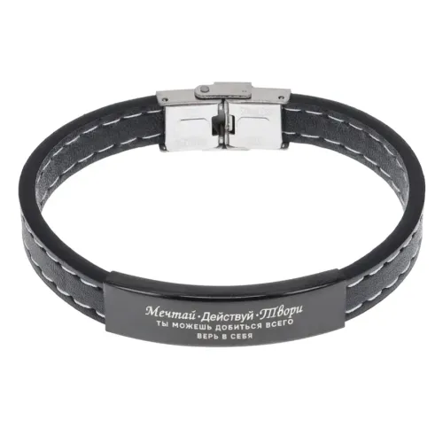 Кожаный браслет с гравировкой «Мечтай, действуй, твори 2».