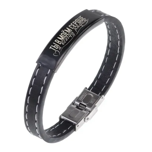 Кожаный браслет с гравировкой «Ты в моём сердце 2».