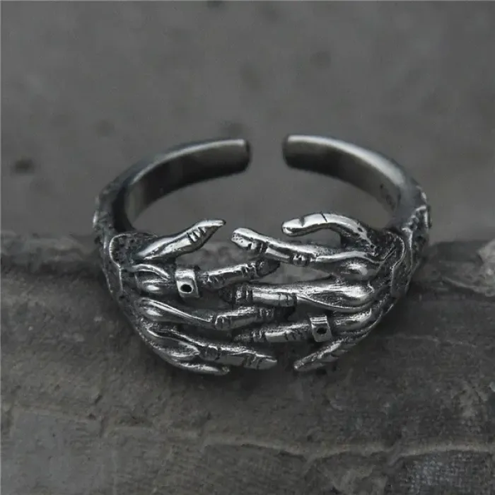 Безразмерное кольцо «Две Руки» — сувенирный аксессуар из металла с дизайном в виде двух рук.