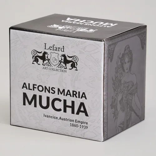 Кружка выполнена из тонкостенного фарфора, материала, отличающегося высокой прочностью и гигиеничностью. Изделие имеет удобную для удержания форму. Художественное оформление нанесено на поверхность, вдохновляясь работами чешского художника.
