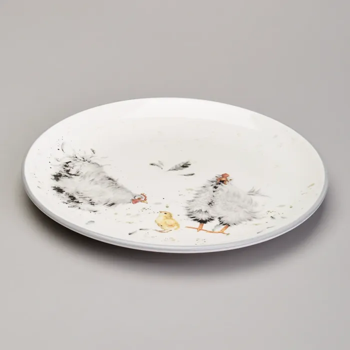 Для сохранения внешнего вида изделия следует избегать мытья в посудомоечной машине и нагрева в СВЧ-печи. Тарелка предназначена для создания комплектной сервировки в сочетании с другими предметами коллекции Funny Hens.