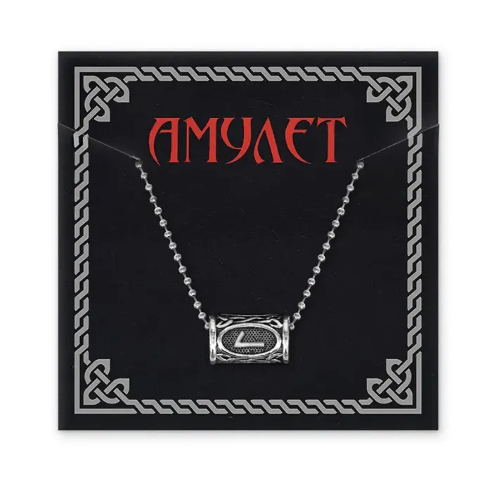Размеры и комплектация: Размер бусины 13x8 мм. Длина цепочки 49 см с застёжкой. В комплекте вкладыш с описанием руны. Упаковка — прозрачный полипропиленовый пакет.