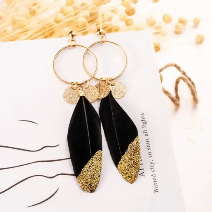 Серьги с перьями, 9х2,5х1см SE314