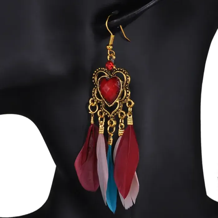 Серьги Сердце с перьями, 9х2,5х1см, разноцветные SE327-02