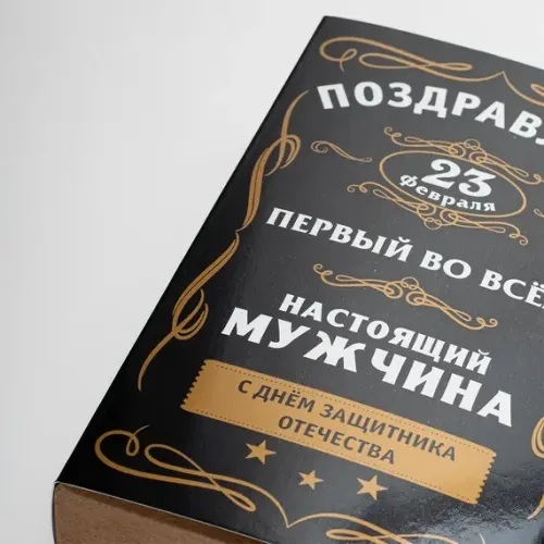 Картонный шубер формата А5 предназначен для упаковки подарков на 23 Февраля. Он изготовлен из качественного картона, что обеспечивает надежную защиту содержимого.