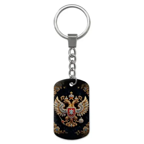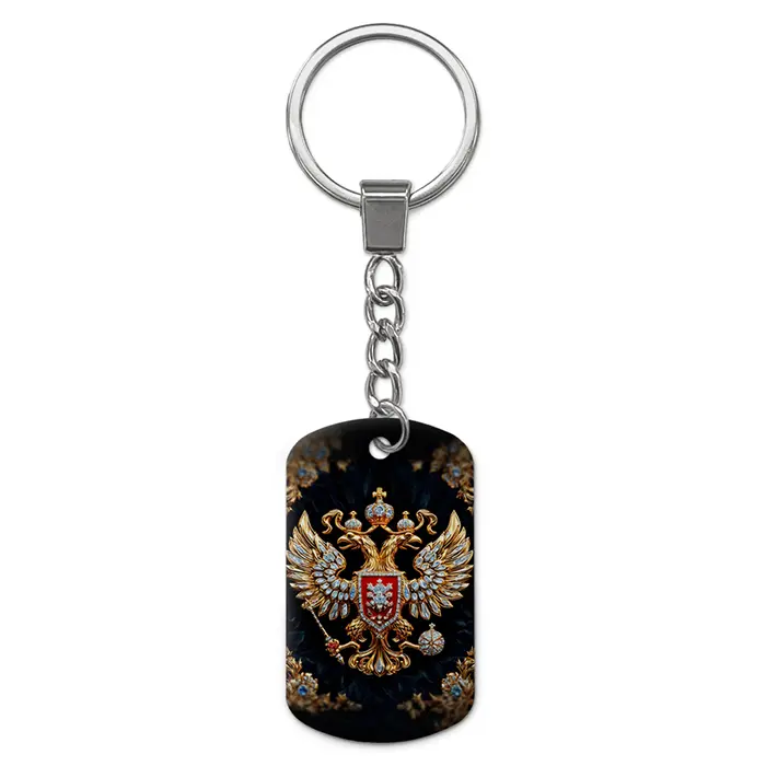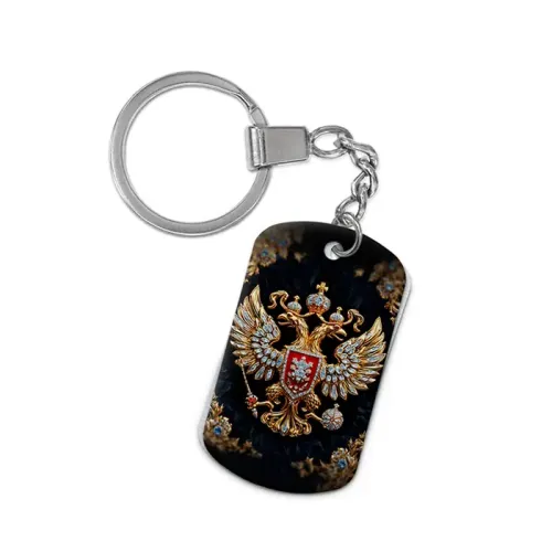 Двухсторонний брелок-жетон с изображением герба России. Изготовлен из алюминиевого сплава.