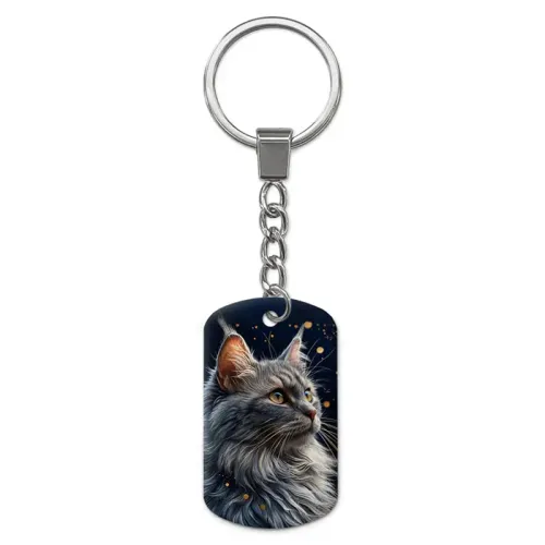 Двухсторонний брелок-жетон с изображением кошки из алюминиевого сплава.