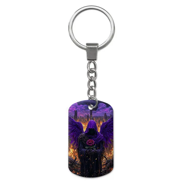 Двухсторонний брелок-жетон с цветным изображением ангела. Изготовлен из алюминиевого сплава.