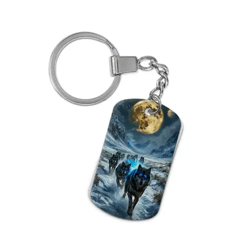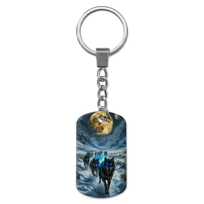 Двухсторонний брелок-жетон с цветным изображением волков. Сувенирный аксессуар из алюминиевого сплава.