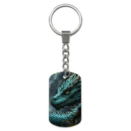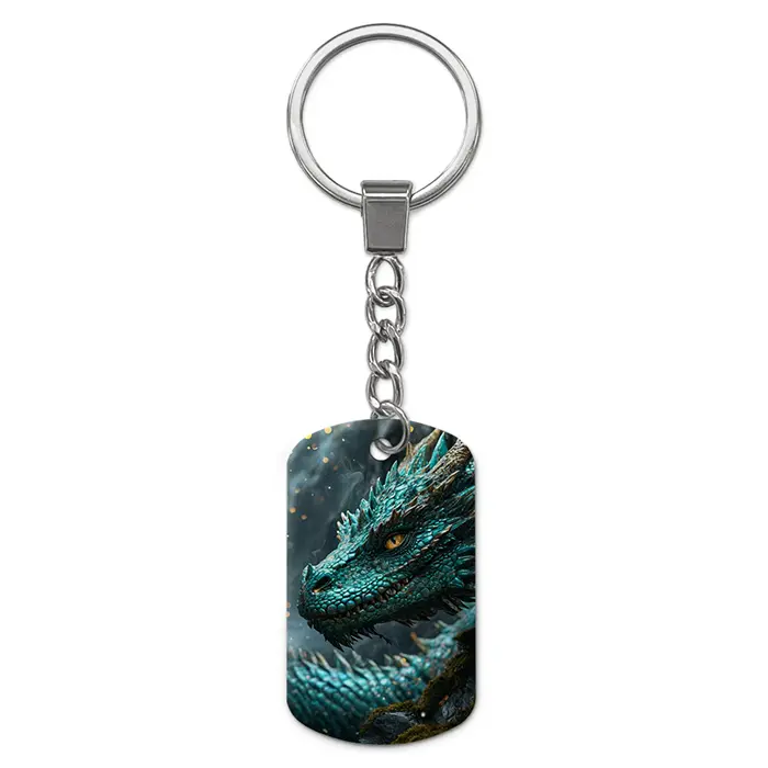 Двухсторонний брелок-жетон для ключей или сумки из алюминиевого сплава с цветным изображением дракона.