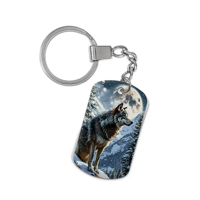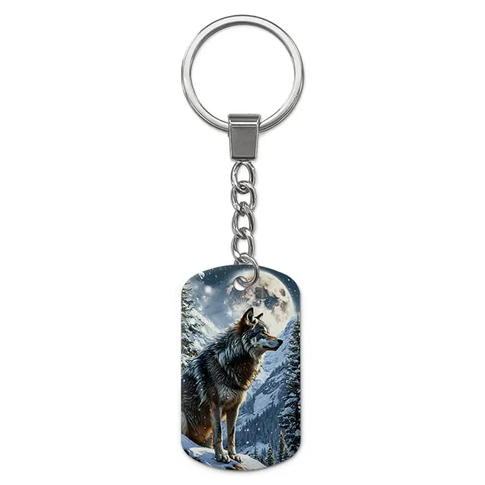 Двухсторонний брелок-жетон с цветным изображением волка из алюминиевого сплава.