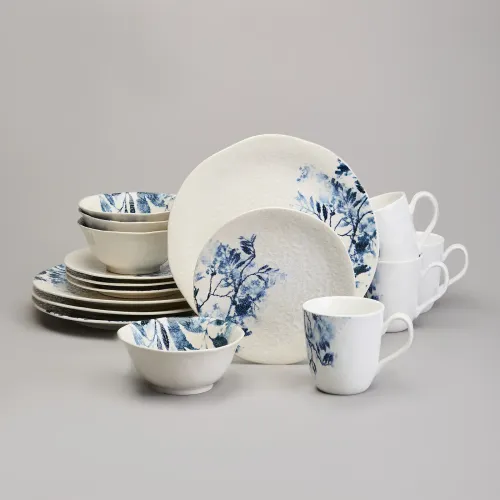 - Материал: фарфор- Количество предметов: 16- Состав набора: 4 обеденные тарелки (диаметр 27 см), 4 закусочные тарелки (диаметр 20 см), 4 салатника (15 х 6,5 см, объём 550 мл), 4 кружки (объём 400 мл)- Особенности ухода: легко моется