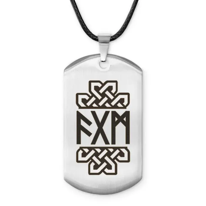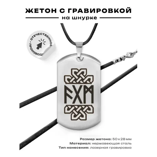 Амулет-жетон из полированной нержавеющей стали с руническим дизайном.