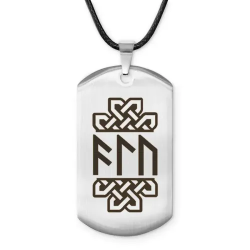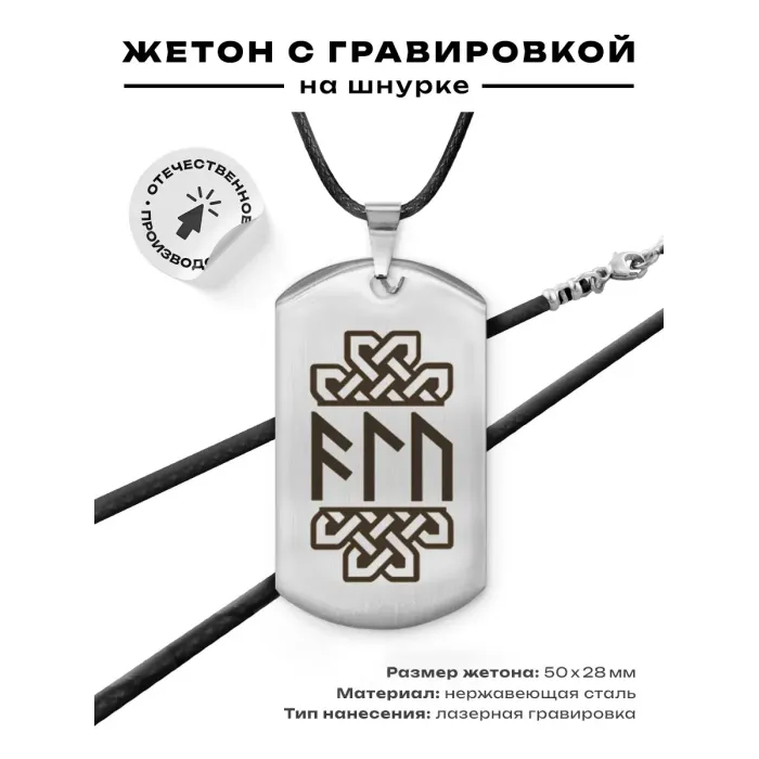 Амулет-жетон из полированной нержавеющей стали с рунической формулой «Помощь богов».