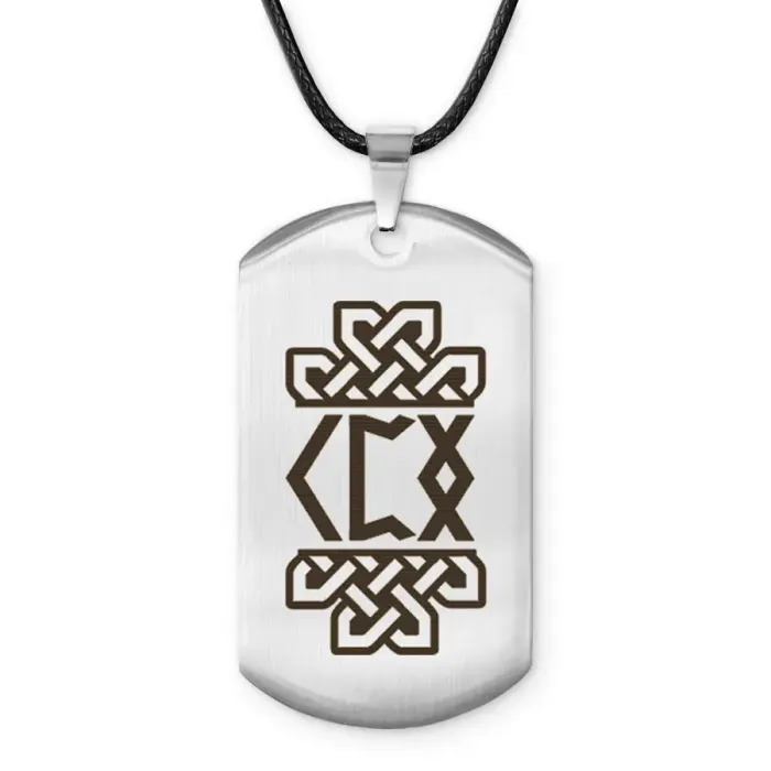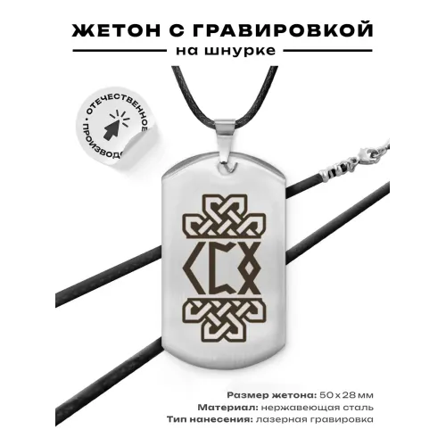 Амулет-жетон сувенирный из полированной нержавеющей стали с рунической символикой.