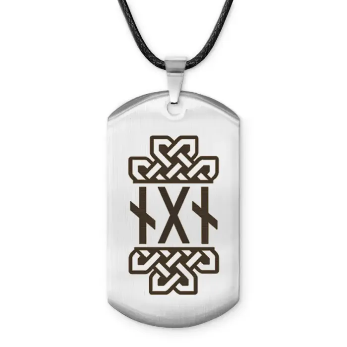 Амулет-жетон из нержавеющей стали с полированной поверхностью и символикой рун.