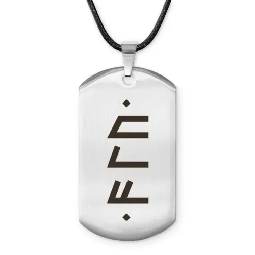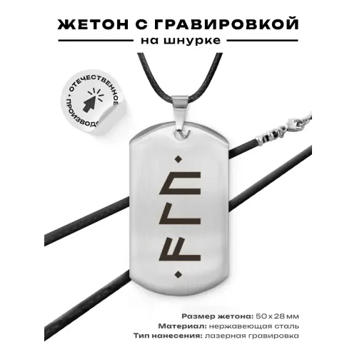 Амулет-жетон из полированной нержавеющей стали с рунической формулой.