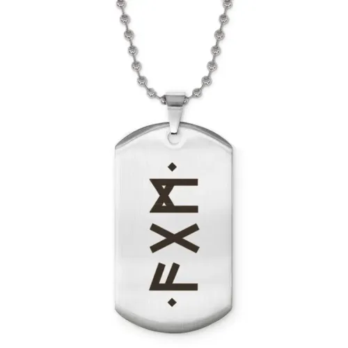 Брелок-жетон из нержавеющей стали с лазерной гравировкой рун.