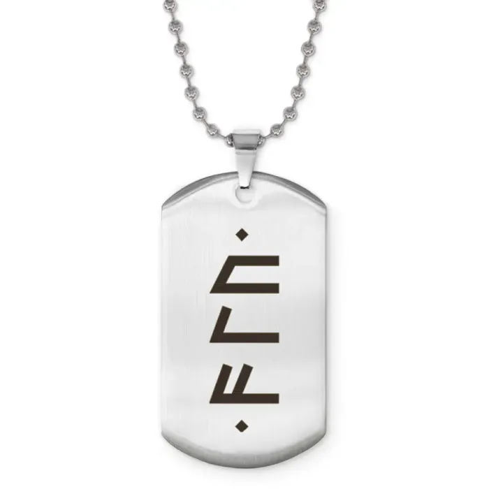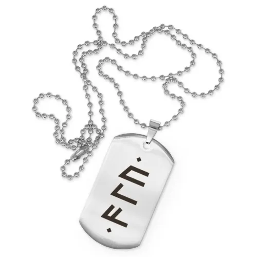 Брелок-жетон из нержавеющей стали с лазерной гравировкой рунической формулы.