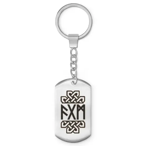 Брелок-жетон из полированной нержавеющей стали с изображением рун.