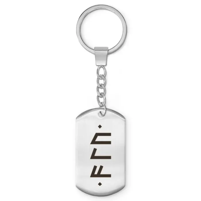 Брелок-жетон из нержавеющей стали с символической рунической формулой.
