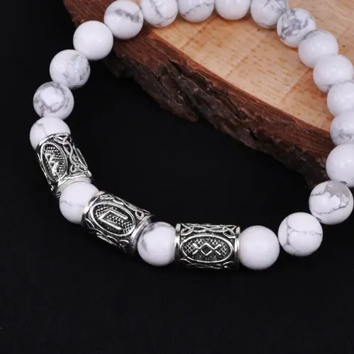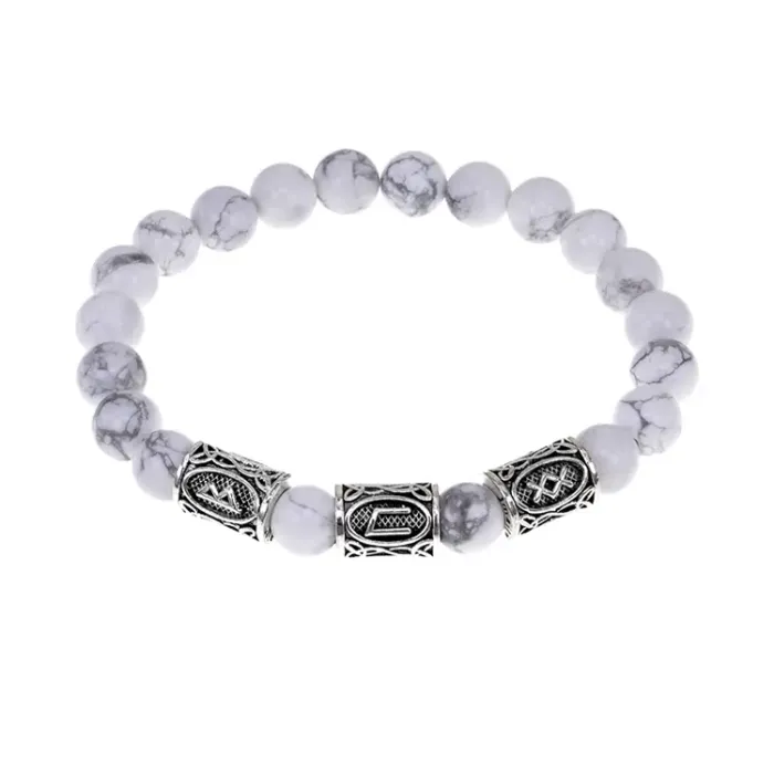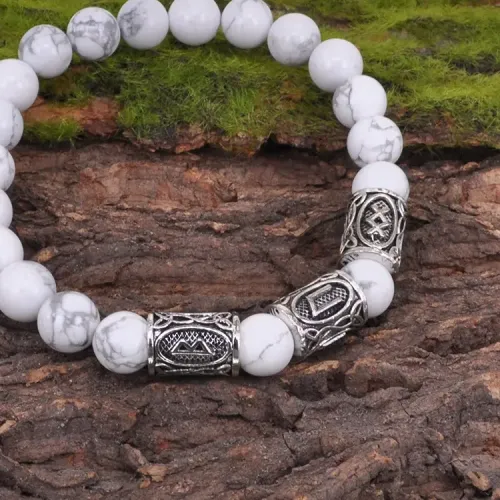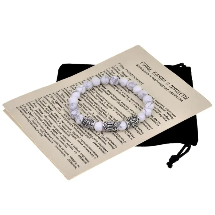 Стрейч-браслет из натурального камня кахолонг с нанесёнными рунами.