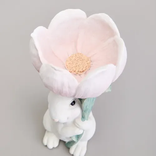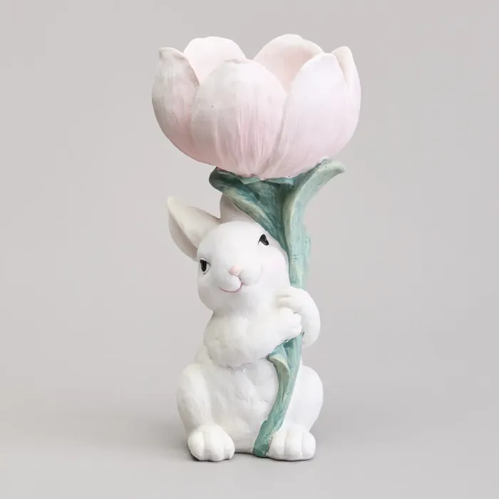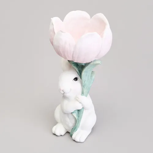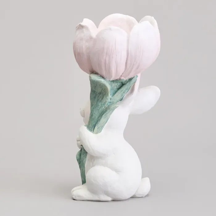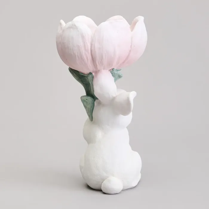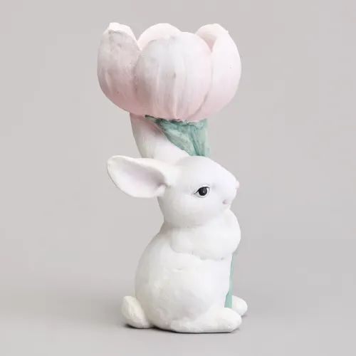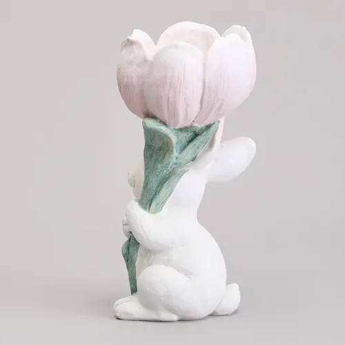 Декоративная фигурка кролика от Lefard предназначена для украшения интерьера. Изделие выполнено из полистоуна с гладким белоснежным покрытием и аккуратными деталями. Фигурка изображает кролика, держащего тюльпан с розовыми лепестками.