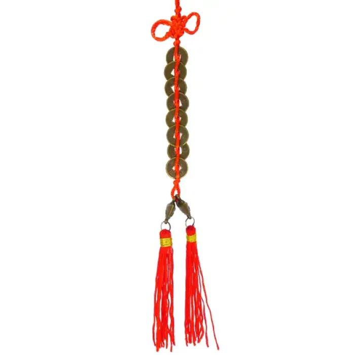 Подвеска Фэн Шуй 8 монет 2 слитка d.1,5см металл 27см Z180-B