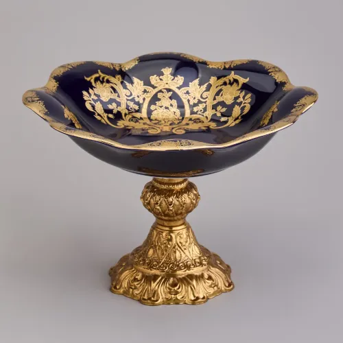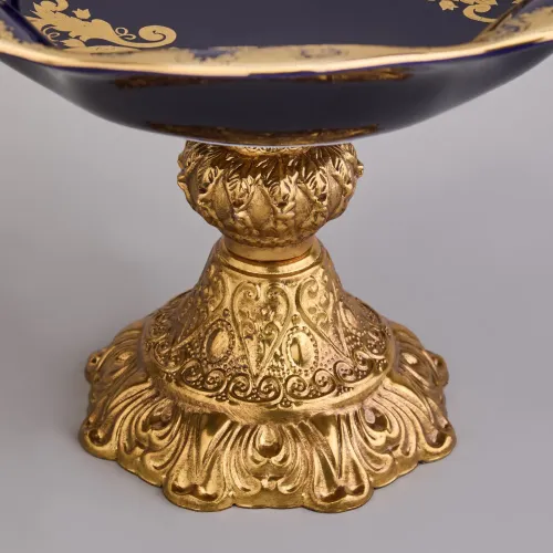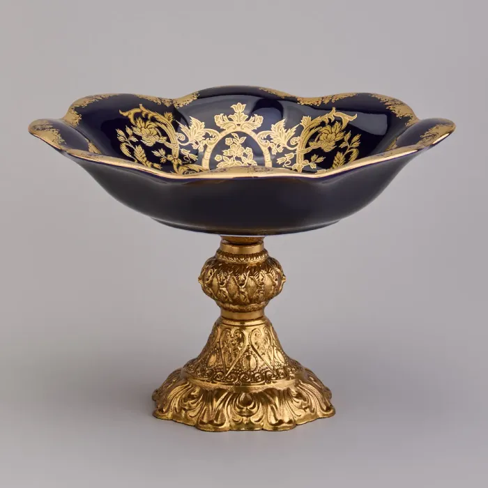Изготовлена вручную из высококачественного фарфора, фруктовница украшена декоративными металлическими элементами. Традиционные технологии производства обеспечивают изделию долговечность и эстетическую привлекательность. Размеры 29х29х21 см делают её удобной для размещения разнообразных угощений.