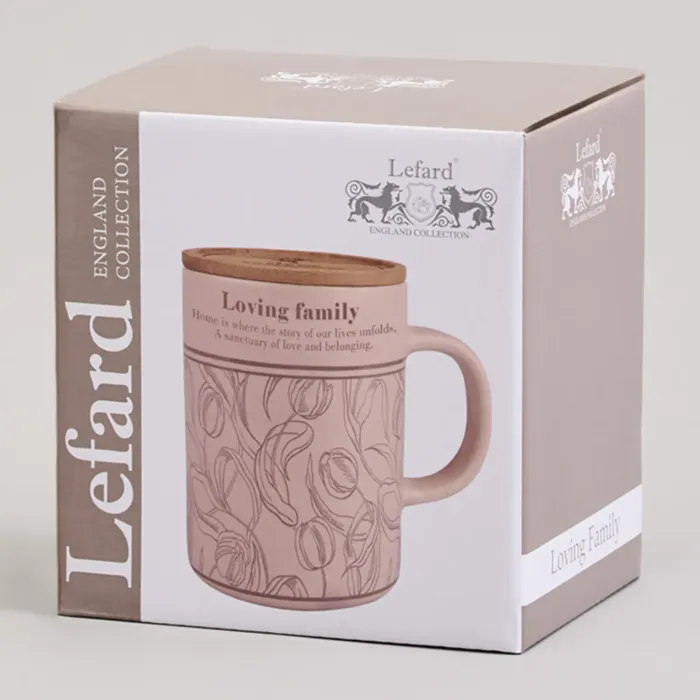 Кружка объёмом 400 мл с бамбуковой крышкой из серии Sweet Home от бренда Lefard предназначена для подачи горячих напитков. Основными преимуществами являются использование фарфора и наличие практичной крышки из бамбука.