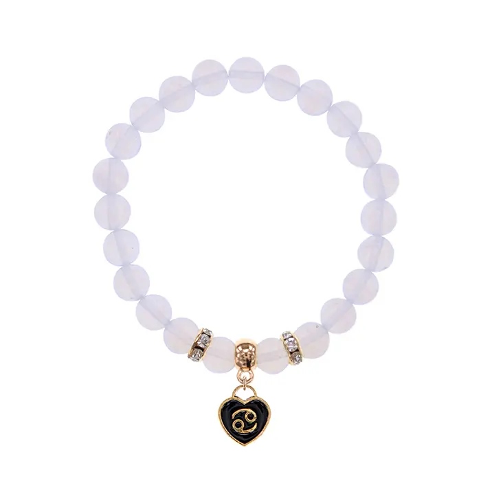 Стрейч-браслет из натурального лунного камня диаметром 8 мм с дизайном, символизирующим знак зодиака Рак.