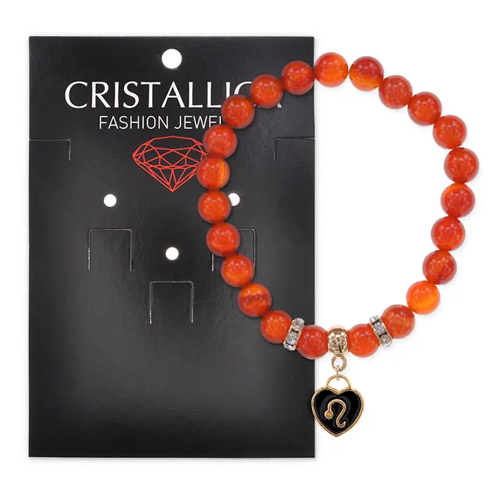 Стрейч-браслет коллекции Cristallica, посвященный знаку зодиака Лев, изготовлен из натурального сердолика.