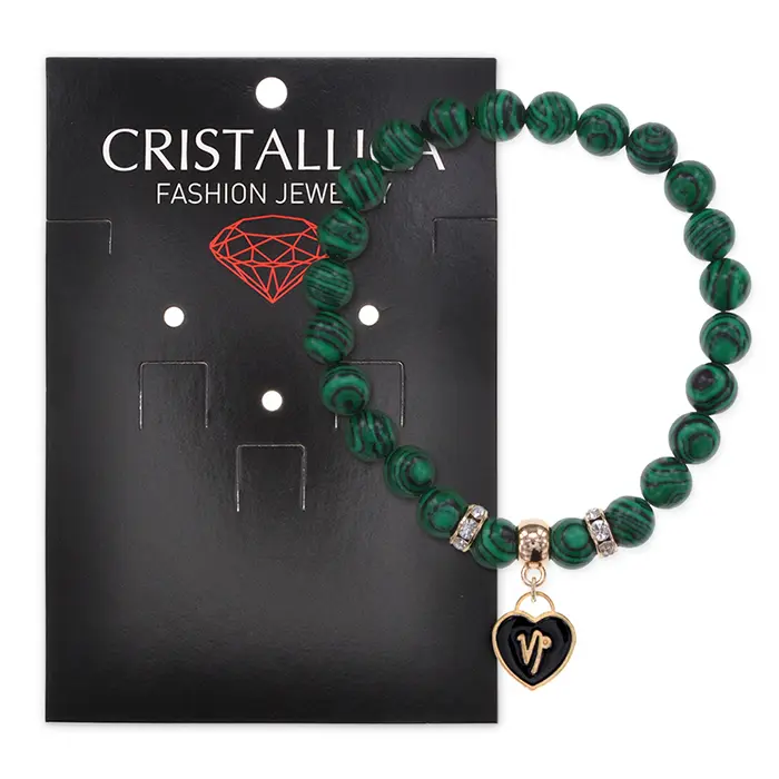 Размеры и комплектация: Диаметр бусин 8 мм, внутренний диаметр браслета около 5,5 см. Упакован в прозрачный пакет с еврослотом, комплектуется подложкой Cristallica.