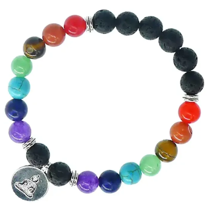 Материал и изготовление: Изготовлен из натуральных камней: лавового камня, тигрового глаза, нефрита и кварца.