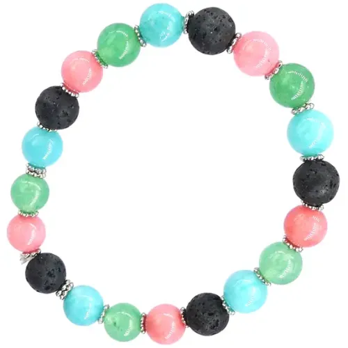 Браслет из лавового камня и тонированного кварца с бусинами диаметром 8 мм.