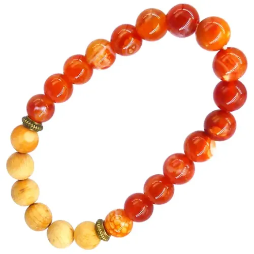 Браслет из натуральных материалов: сердолика и сосны. Дизайн с бусинами диаметром 8 мм.