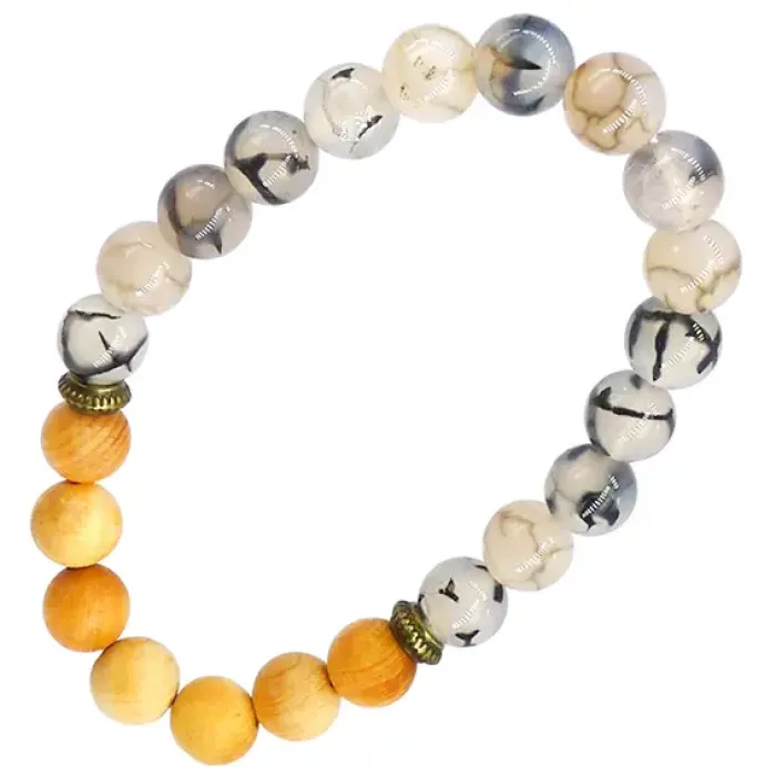 Браслет из натурального агата и сосны с диаметром камней 8 мм.