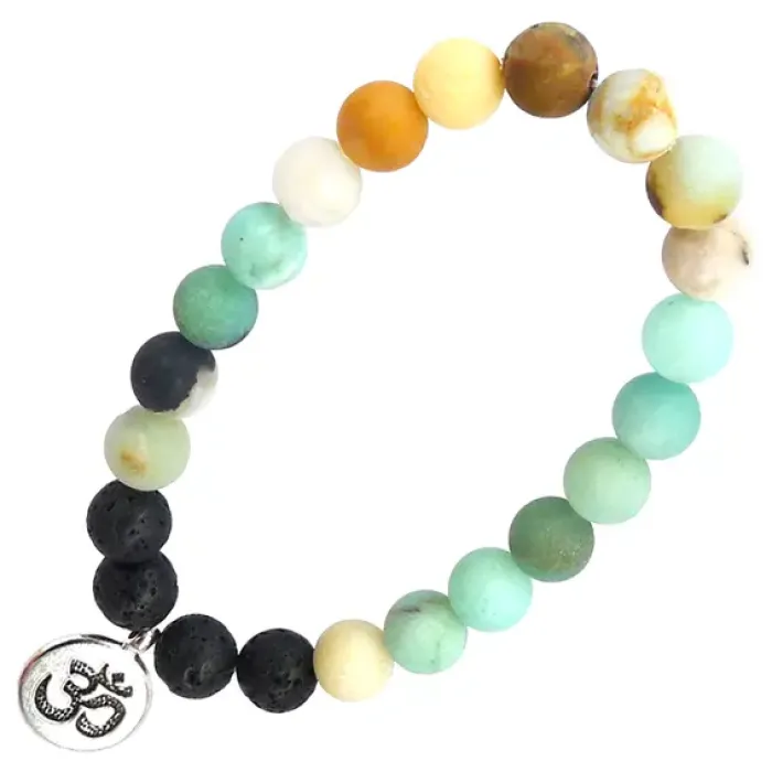 Браслет с подвеской в виде символа Ом из лавового камня и амазонита.