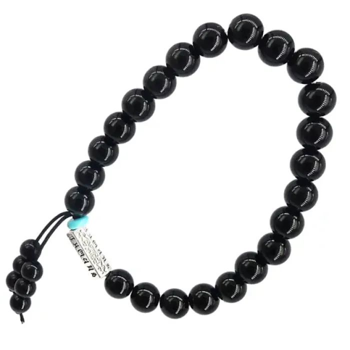 Браслет из натурального чёрного агата с камнями диаметром 8 мм.