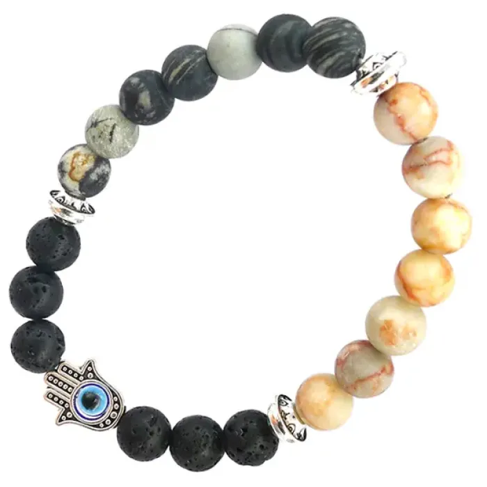 Браслет с подвеской от сглаза (Хамса), камень, 8 мм BX055