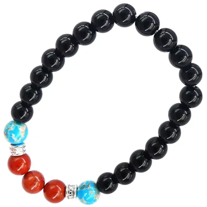 Браслет из натуральных камней яшмы, чёрного и белого агата диаметром 8 мм.