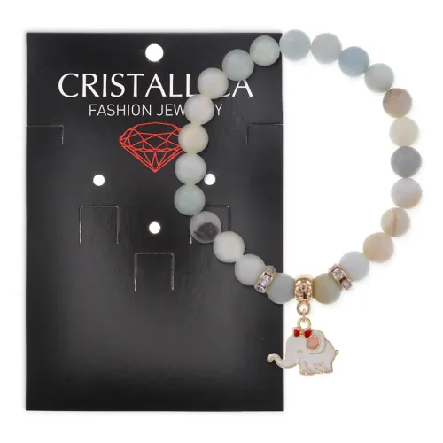 Стрейч-браслет из коллекции Cristallica. Изготовлен из натурального амазонита, украшен стразами и фурнитурой под светлое золото.