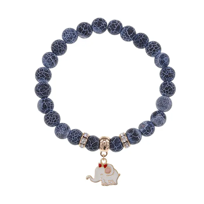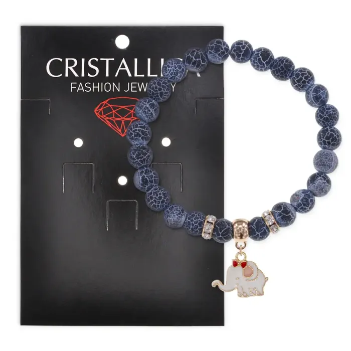 Браслет Слоненок (мудрость, сила) нат.кам. синий Африк. агат 8мм BS-CR-0987