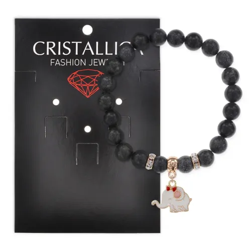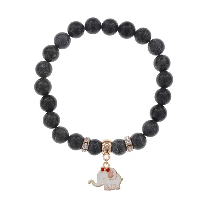 Стрейч-браслет из натурального змеевика с подвеской в виде слона.