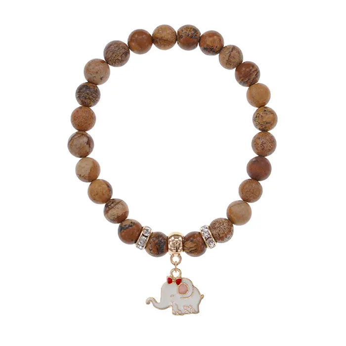 Браслет Слоненок (мудрость, сила) нат.кам. Песочная яшма 8мм BS-CR-0990
