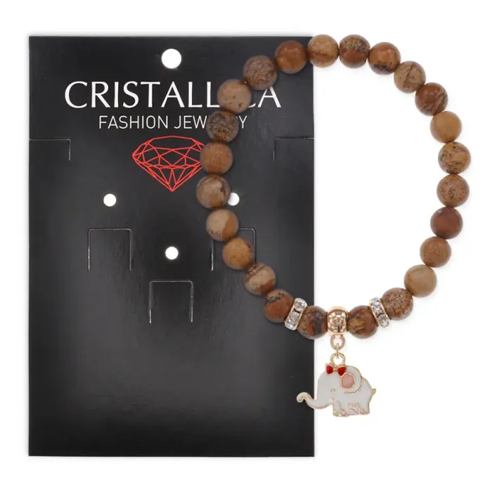 Стрейч-браслет из натуральной песочной яшмы с подвеской в виде слона.