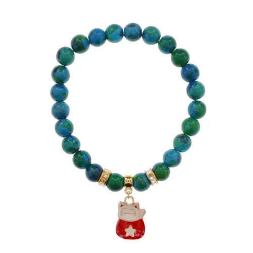 Браслет Манеки-Неко (защита дома) синт.кам. Хризоколла 8мм BS-CR-1011