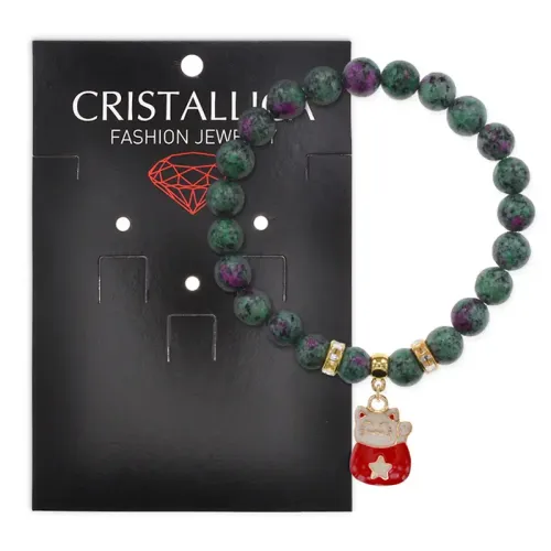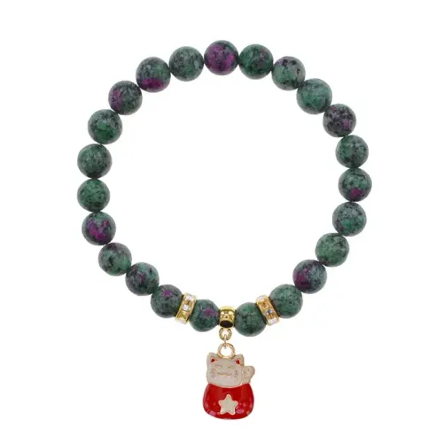 Браслет с фигуркой Манеки-Неко из синтетического камня, имитирующего цоизит.