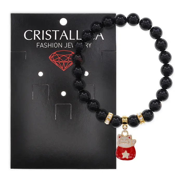 Браслет Манеки-Неко (защита дома) нат.кам. Черный агат 8мм BS-CR-1013